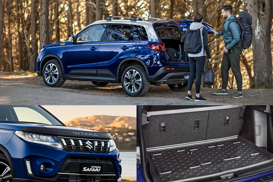 Café hopping, action-packed adventures, or zipping around getting stuff done — whatever you're into, get into it with the new limited edition Vitara Safari. With go-anywhere performance, advanced safety suite and flexible interior space, this self-charging hybrid SUV includes a range of accessories for even more style, protection and versatility.